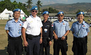 En 2007, la carrière de John l’a conduit au Timor-Oriental, où il a œuvré pendant 14 mois à titre de gardien de la paix. L’un des six policiers canadiens au sein d’une brigade de maintien de la paix composée de plus de 1 500 membres, John y occupait les fonctions de chef d’état-major de la division policière de l’ONU, et était chargé des normes professionnelles, de la dotation et de la formation.