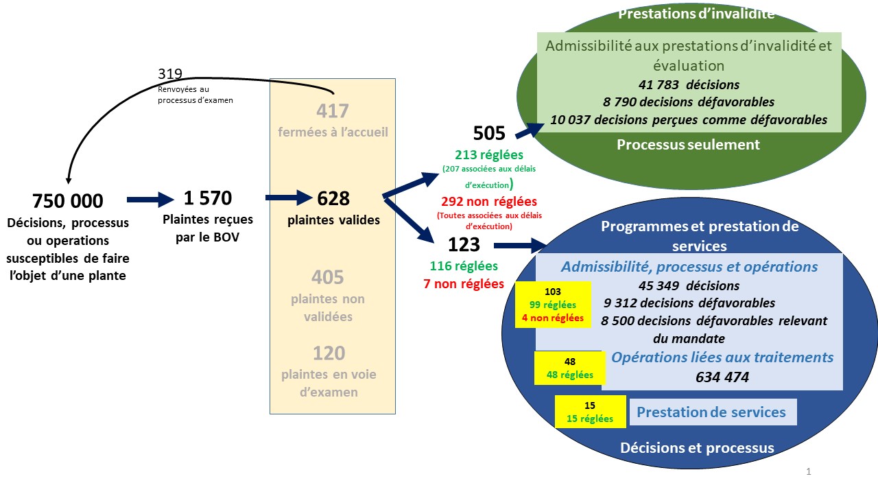 Les 750 000 possibilités de plainte se sont traduites par 1 570 plaintes au BOV. De ces plaintes :