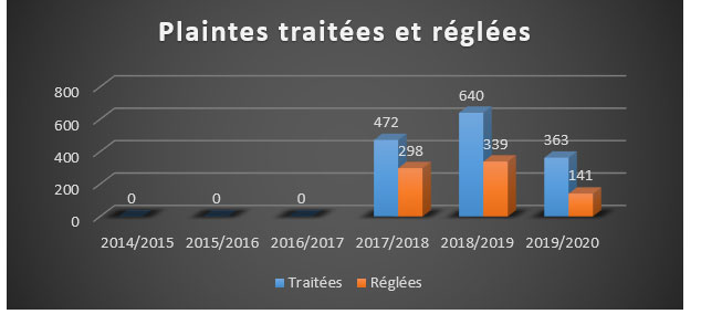 Figure 2 : Nombre de plaintes traitées et réglées par le BOV