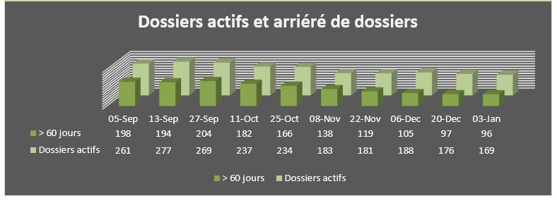 | Dossiers actifs | 261 | 277 | 269 | 237 | 234 | 183 | 181 | 188 | 176 | 169 |