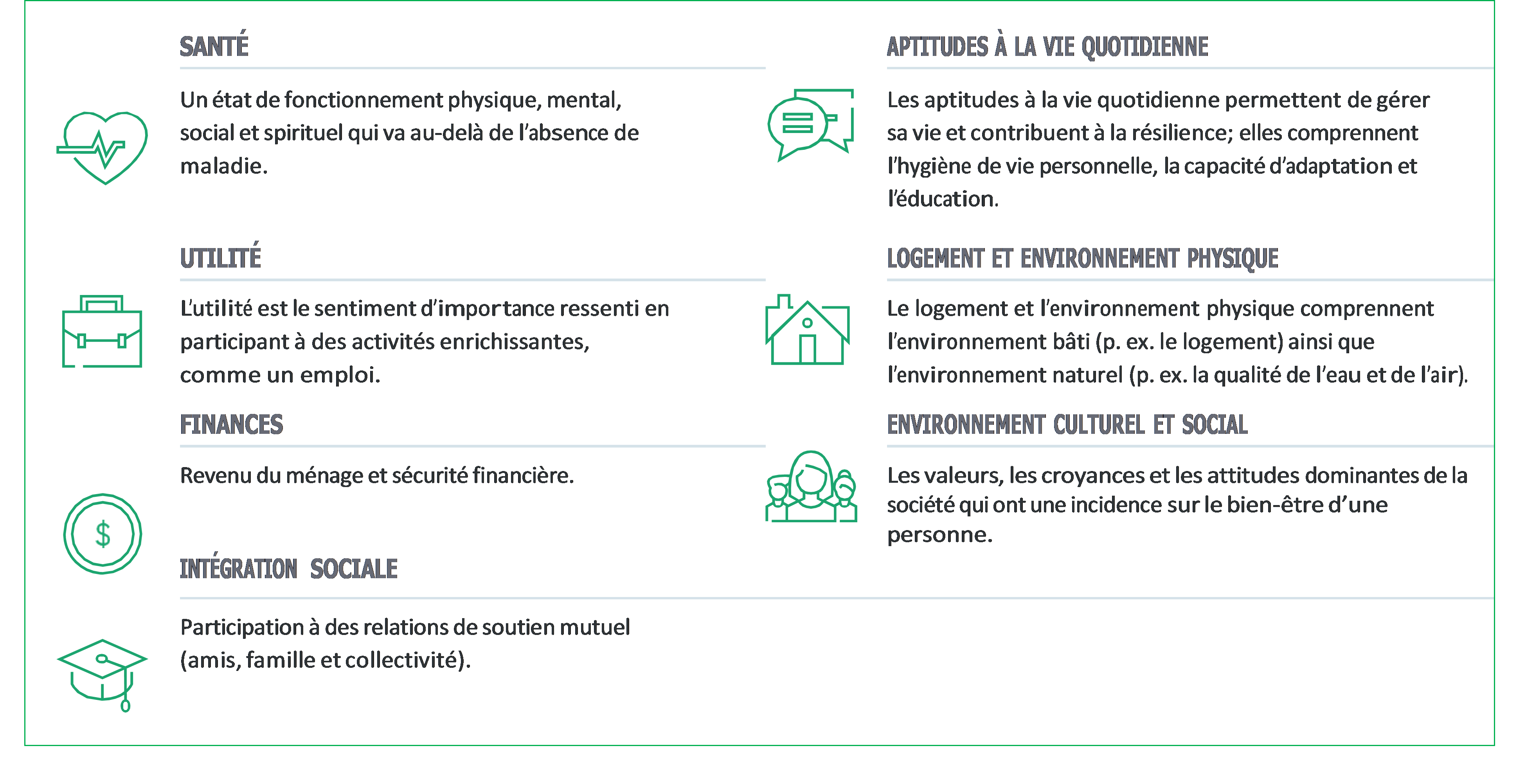 Les valeurs, les croyances et les attitudes dominantes de la société qui ont une incidence sur le bien-être d'une personne.
