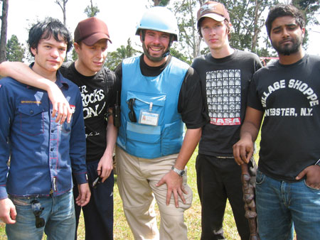 Les membres du groupe rock Sum 41 en Afrique avec Chuck Pelletier.