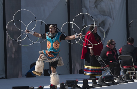 Un danseur autochtone au Mémorial national du Canada à Vimy.
