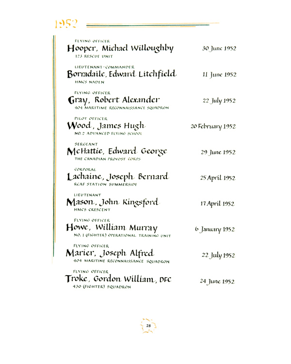 | 80002624 | Troke | Gordon William | 24 juin 1952 | Lieutenant d'aviation | 430 (Fighter) Squadron |