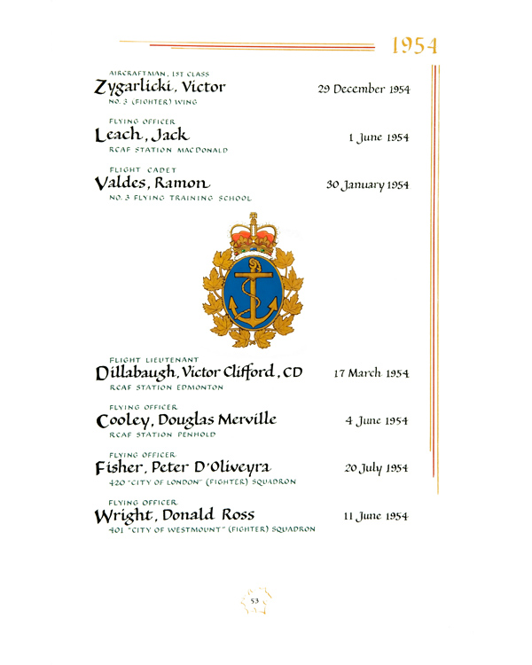 | 80002694 | Wright | Donald Ross | 11 juin 1954 | Lieutenant d'aviation | 401 "City of Westmount" (Fighter) Squadron |