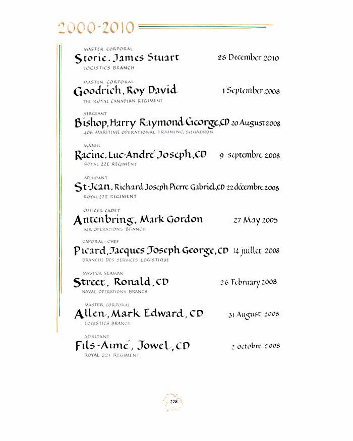 | 80003653 | Goodrich | Roy David | 1 septembre 2008 | The Royal Canadian Regiment | |