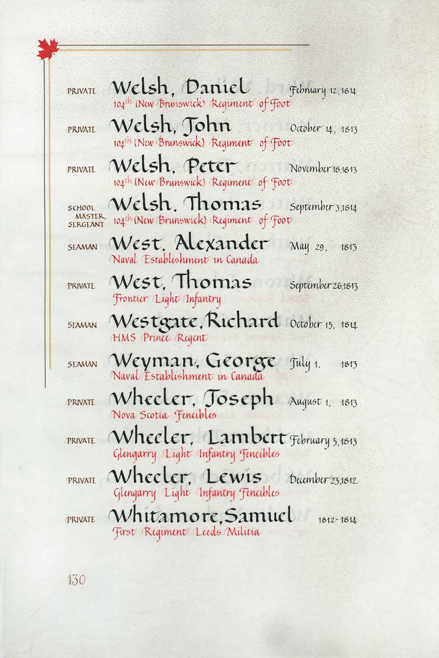 | Welsh | Daniel | 12 février 1814 | Soldat | ||
