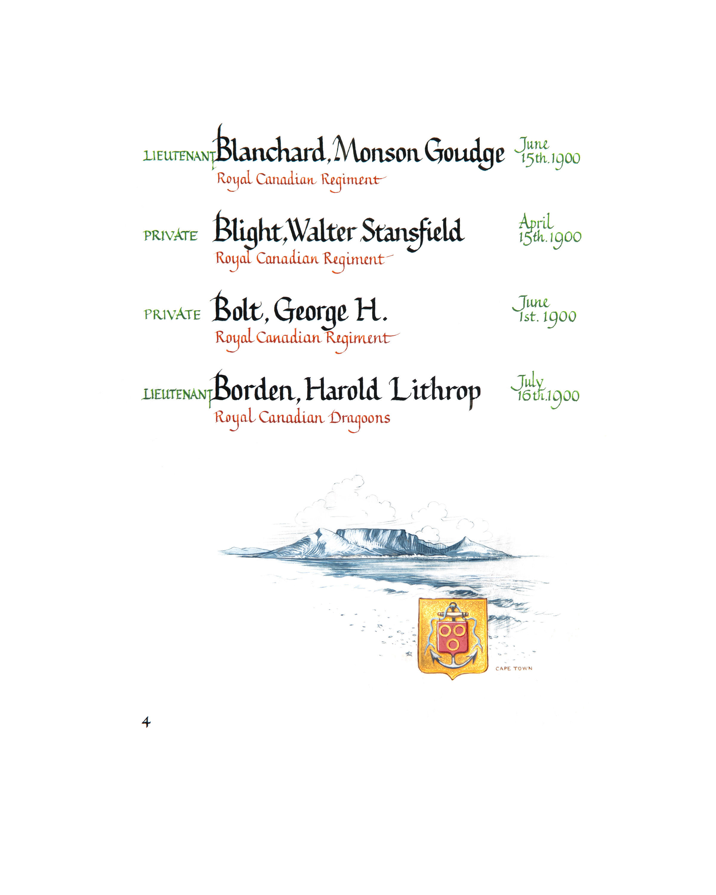Cette page est en vedette dans la Chapelle du Souvenir de la Tour de la paix, à Ottawa, les jours suivants :