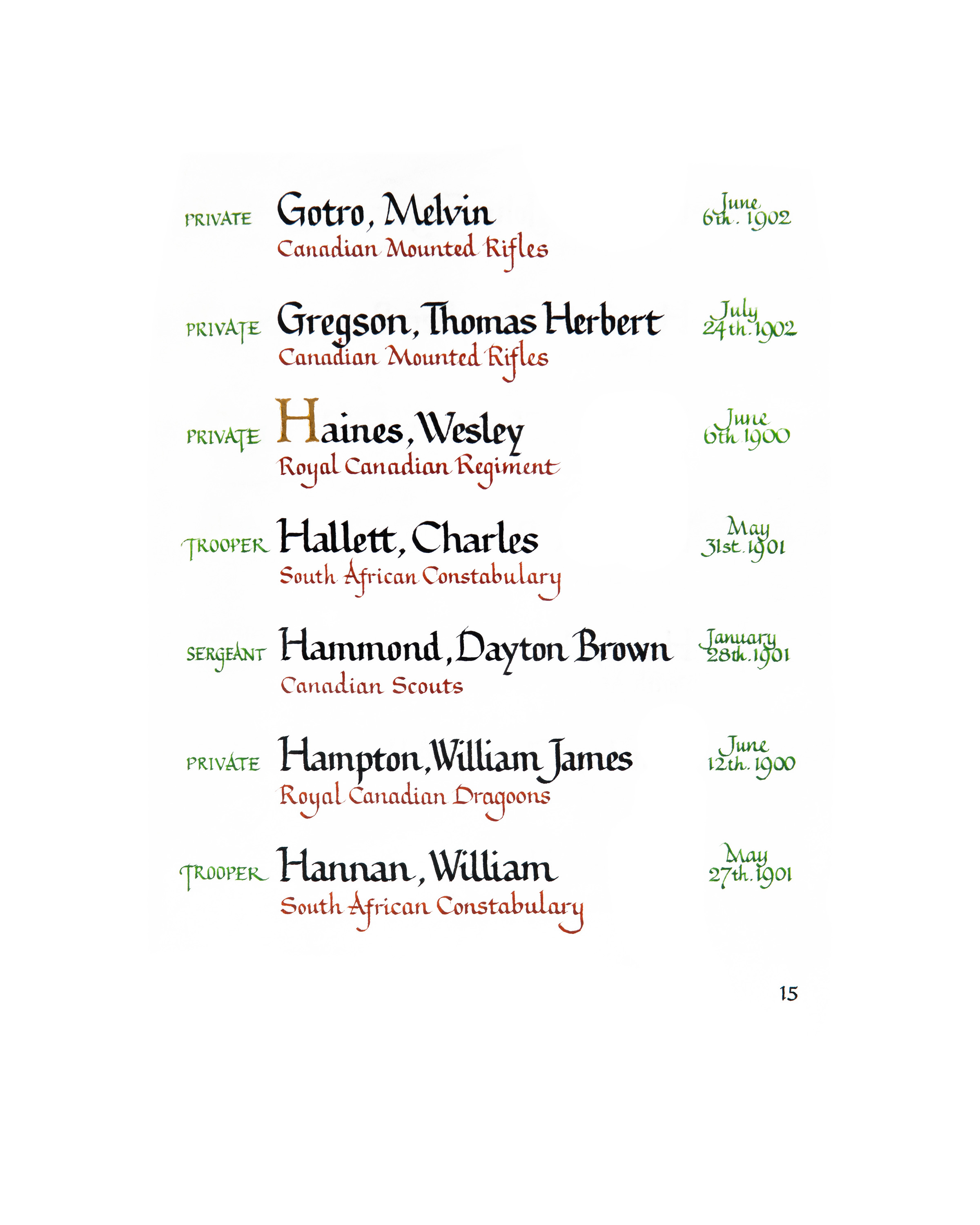 Cette page est en vedette dans la Chapelle du Souvenir de la Tour de la paix, à Ottawa, les jours suivants :