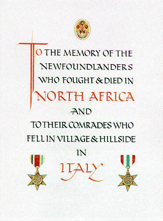 Page Memorial - North Africa and Italy du Livre: Terre-Neuve