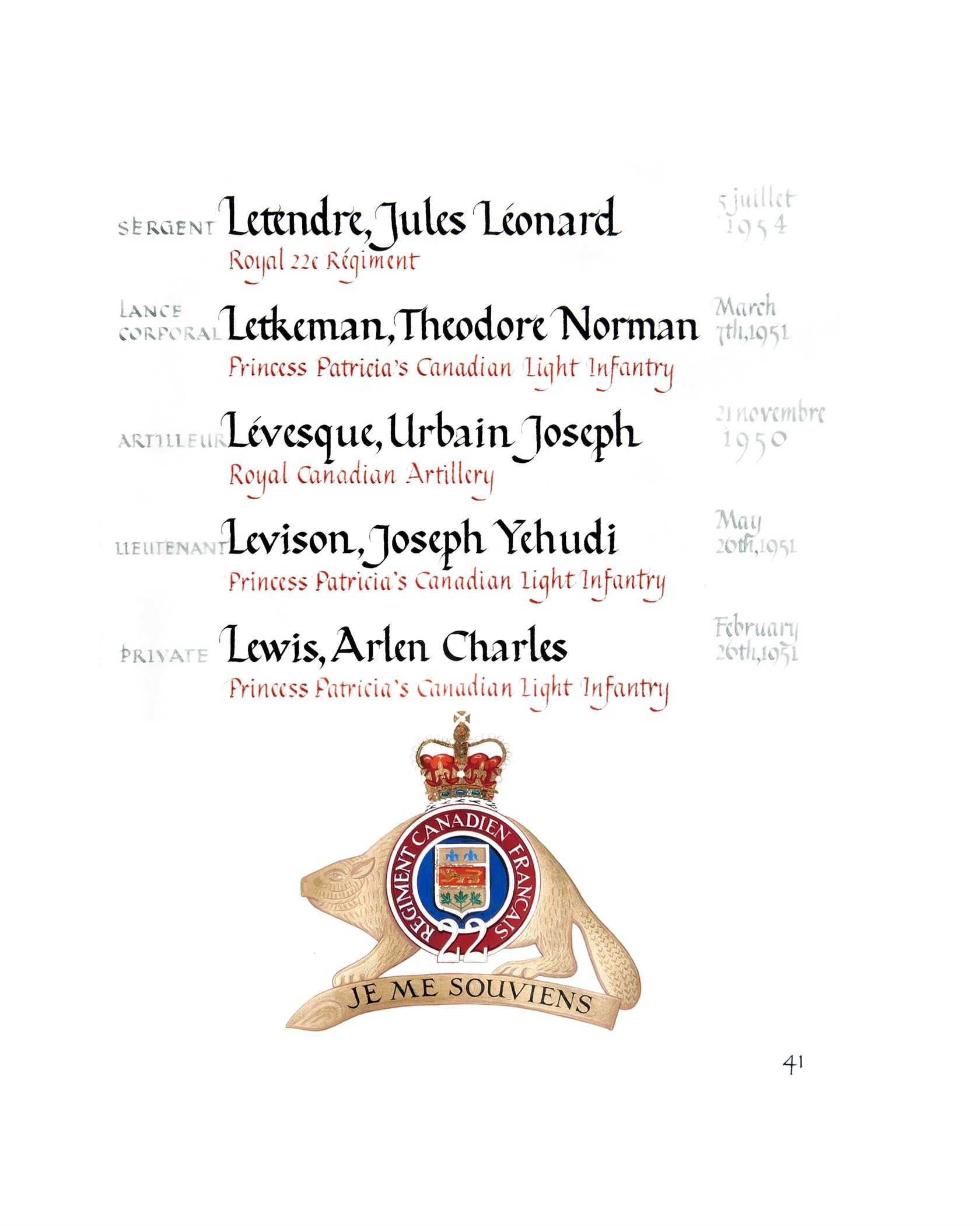 Cette page est en vedette dans la Chapelle du Souvenir de la Tour de la paix, à Ottawa, les jours suivants :