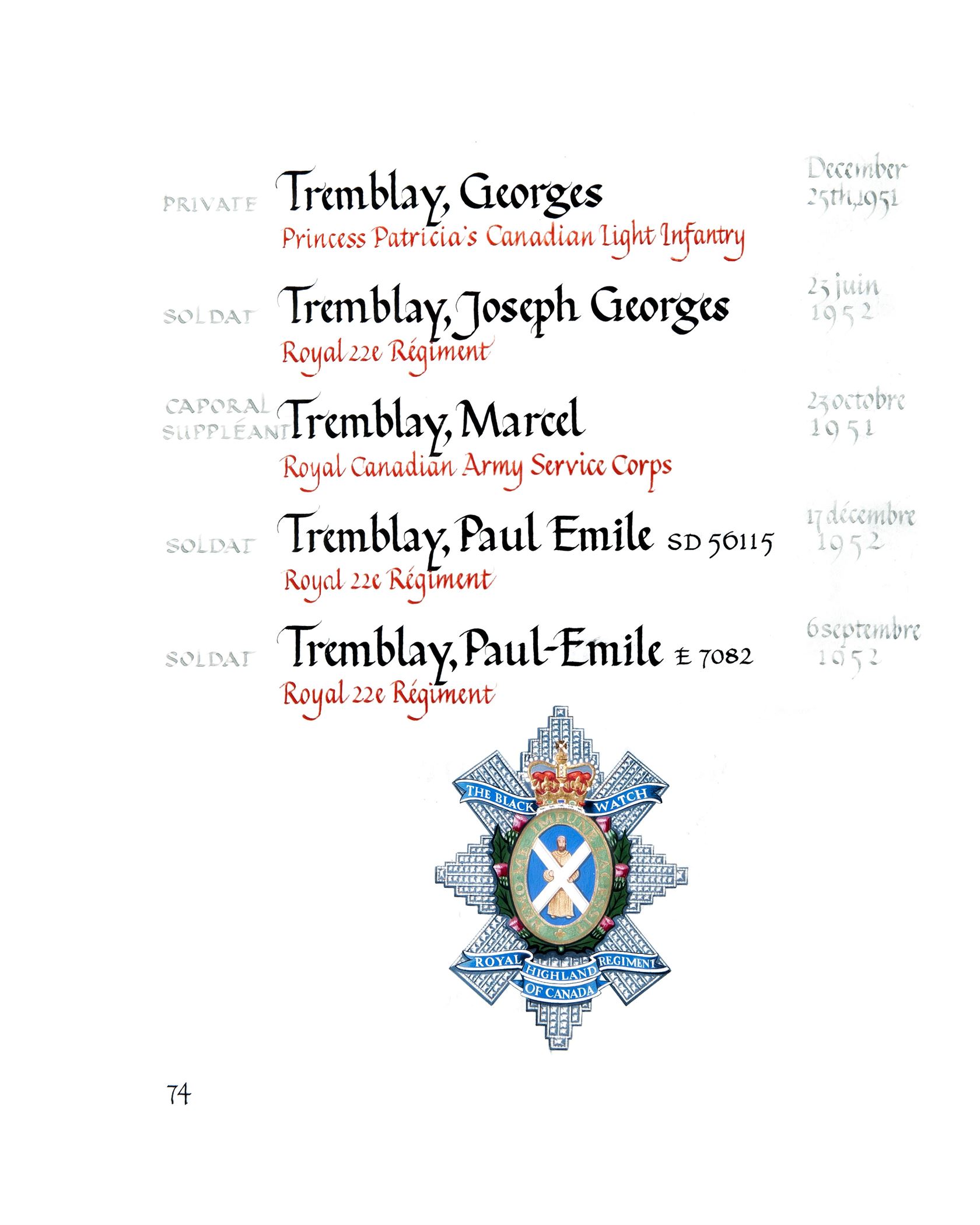 Cette page est en vedette dans la Chapelle du Souvenir de la Tour de la paix, à Ottawa, les jours suivants :
