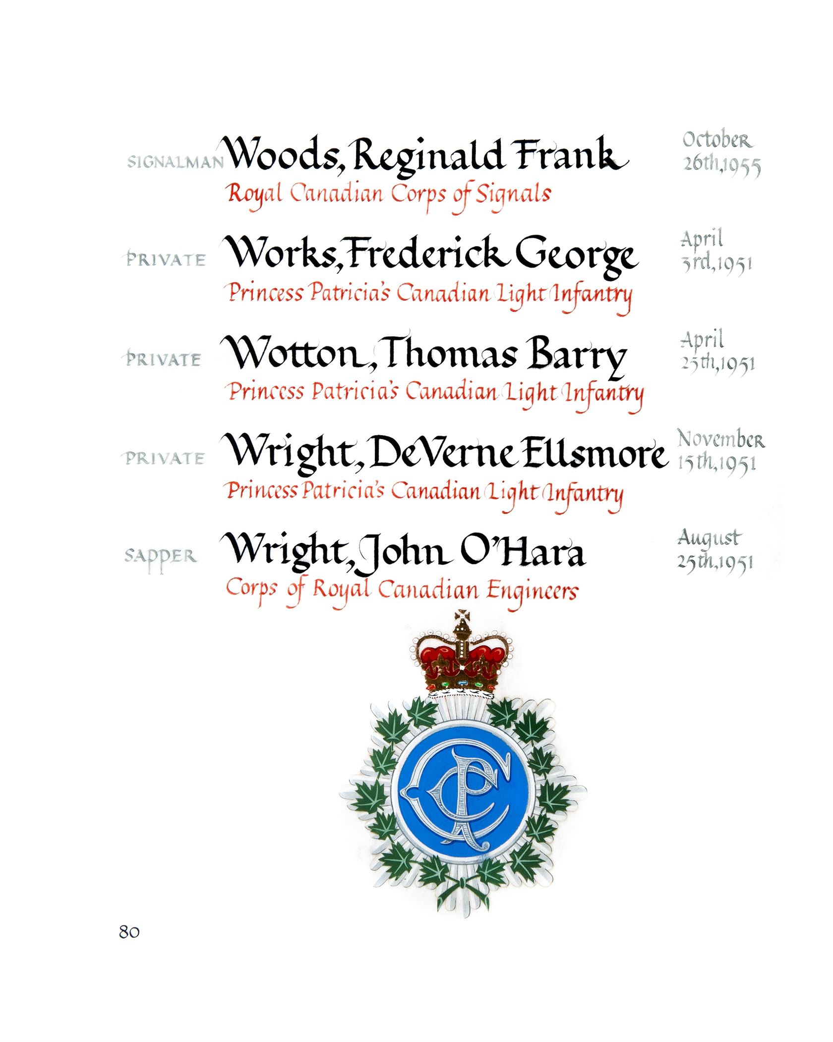 Cette page est en vedette dans la Chapelle du Souvenir de la Tour de la paix, à Ottawa, les jours suivants :