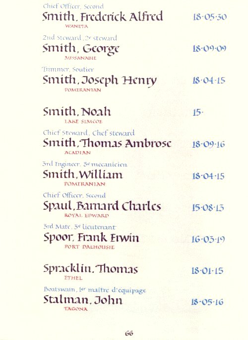 | 4021767 | Spoor | Frank Erwin | 19 mars 1916 | 3rd Mate | Port Dalhousie |