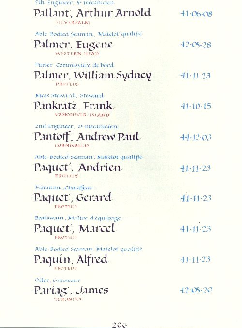| 2640451 | Paquin | Alfred | 23 novembre 1941 | Able-Bodied Seaman | Proteus |