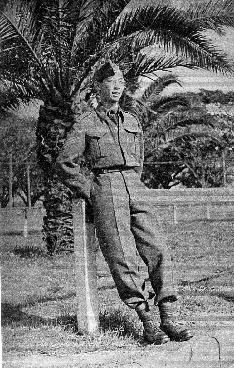 Maintenant oui, c'était de la discrimination ou quelque chose comme ça. Je devais faire un défilé pour le colonel avant de pouvoir rentrer dans l'armée et ils. le. Je crois que l'officier de recrutement avait été interrogé sur la question et il a répondu, « Sommes-nous.autorisons-nous les Chinois dans l'armée? » Et il a dit, « Eh bien, quelle est. quelle expérience a-t-il? » Je lui ai dit que j'avais travaillé comme technicien pendant un certain nombre d'années et que je possédais un diplôme de mécanicien motoriste, et il a dit, « Bien, il sera, il sera mon chauffeur. » C'est comme ça que je suis rentré dans l'armée. Mais, juste un peu plus tard, comme je conduisais vite, j'ai arrêté d'être son chauffeur (rires).
