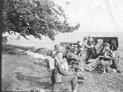 Après quelques semaines à Sennybridge au pays de Galles, on nous a dit de nettoyer à fond tous les canons et l'équipement. La boue des collines du pays de Galles était gluante et collait à tout. C'était une grosse corvée de tout nettoyer comme il faut! Dans mon groupe, il y avait des gars inventifs. Pour eux, la manière facile devait nécessairement être la meilleure. Stan Gillespie et Gordie Matheson ont donc suggéré de démonter les roues de nos canons et de l'avant-train. De cette façon, il serait possible de vraiment nettoyer à fond. J'étais le sergent. J'ai dit « c'est bien, faisons donc ça ». Nous venions de commencer et ça allait très bien quand se sont pointés le colonel Landers et le commandant du camp, accompagnés du major Bill Greenlay. Le colonel Landers s'est arrêté devant la scène et a dit : « Ça, sergent, c'est se servir de sa tête et faire bien les choses ». Je sentais les regards des autres sergents du régiment qui devaient bien se dire : ce lèche-bottes et ses hommes.