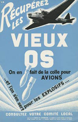 Affiche de guerre : Récupérez les vieux os, on en fait de la colle pour avions ... et l'on s'en sert pour les explosifs...