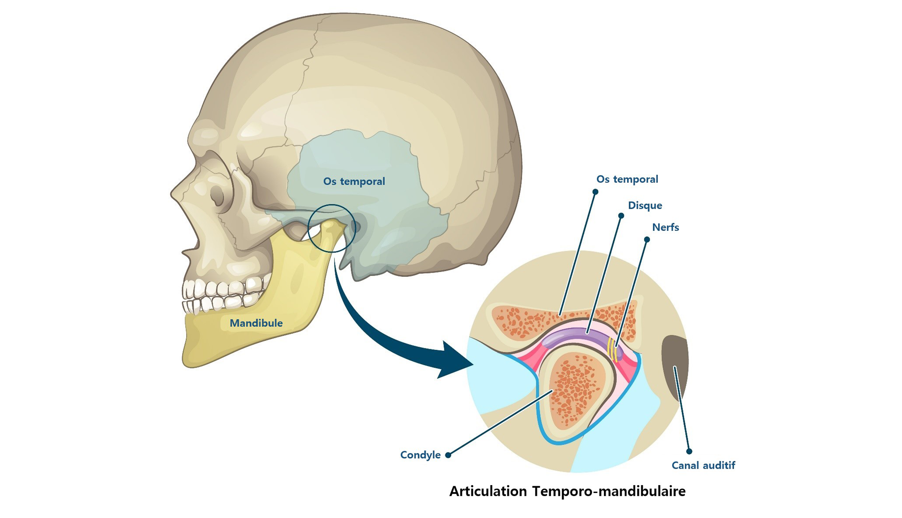 - Le disque articulaire sépare l’os temporal et le condyle mandibulaire, assurant la stabilité, l’absorption des chocs et la fluidité du mouvement.