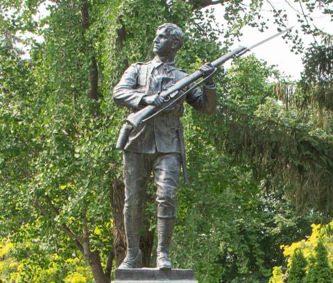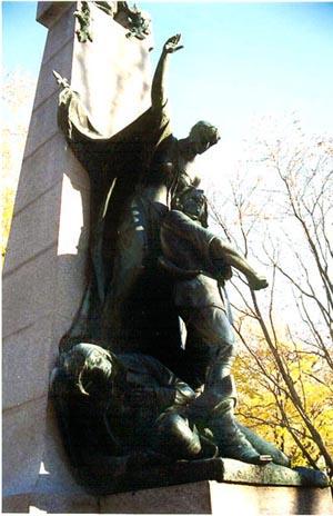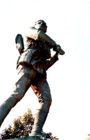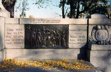 Cette statue a été sculptée par Alfred Laliberté à la mémoire des actions d’éclat de Dollard des Ormeaux en 1660.