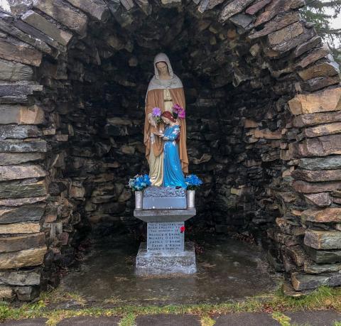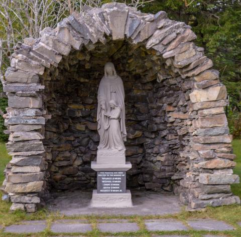 La grotte est une structure de pierre autoportante avec une statue d’Anne, la sainte patronne des mères, reposant sur un pilier où sont inscrits les noms des hommes O’Brien morts à la guerre. C’est Mme O’Brien elle-même qui a financé sa création au milieu des années 1950. La grotte a été construite par l’équipe Richard Mahon (père et fils), anciennement de Logy Bay. Au fil des ans, ses fondations se sont déplacées, rendant la structure instable et endommageant gravement la statue de Sainte-Anne. En 2020,  la Logy Bay Development Association, une association communautaire à but non lucratif, a collecté des fonds et contracté la ville s’est associée aux Grand Concourse Authority pour stabiliser les fondations et restaurer la grotte et la statue dans leur état d’origine. À cette occasion, l’orthographe du nom de famille figurant sur le monument commémoratif a été corrigée, passant de O’Brine à O’Brien.