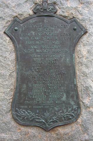 Ce certificat énumère les anciens combattants de l'endroit et ceux des leurs qui sont décédés durant la Première Guerre mondiale.