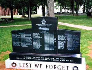 IN MEMORY OF THOSE WHO GAVE THEIR LIVES WHILE SERVING ON PRINCE EDWARD ISLAND 1941-1945 DURING WORLD WAR TWO