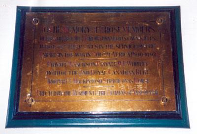 Ce mémorial est dédié aux membres du 6e Régiment du Duke of Connaught’s Own Rifles qui ont perdu la vie pendant la guerre des Boers, de 1899 à 1902. La plaque mesure 40 pouces sur 63.