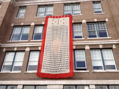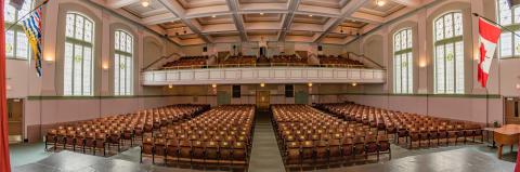Chaque feuille d’érable a été cousue à la main sur la bannière. Le total des feuilles d’érable, chacune représentant une personne connue liée à l’école, est de 466. La bannière de la Grande Guerre continue d’être accrochée aux fenêtres du quatrième étage le jour du Souvenir.