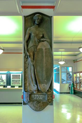 The Memorial Tablet was cast in the early 1920s by art teacher Earl (Bunny) Clarke. It lists the names of Victoria High School's three teachers and 82 students who died in the First World War. The war was a time for patriotic heroism and the school took pride in its 11 military crosses and seven military medals.