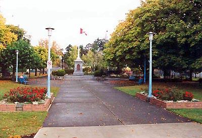 Two stone monuments - the community war memorial at Kettle Valley, B.C., and a family marker in Ross Bay Cemetery, Victoria - reflect the price Canadian families paid for the combined war effort of fathers, sons and daughters.