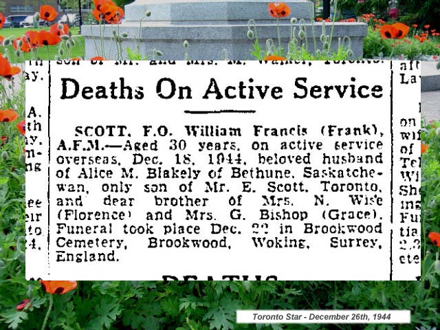 Fils d'Ebenezer et Clara Maud Scott. Époux d'Alice May Blakely Scott, de Regina, Saskatchewan.